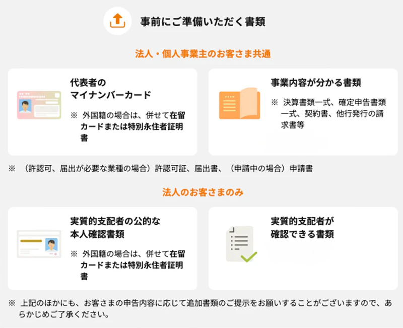 迷ってしまう場合は口座開設ページで必要書類を確認したうえで、事業の状況をまとめて相談できる窓口を活用する選択肢もあります。